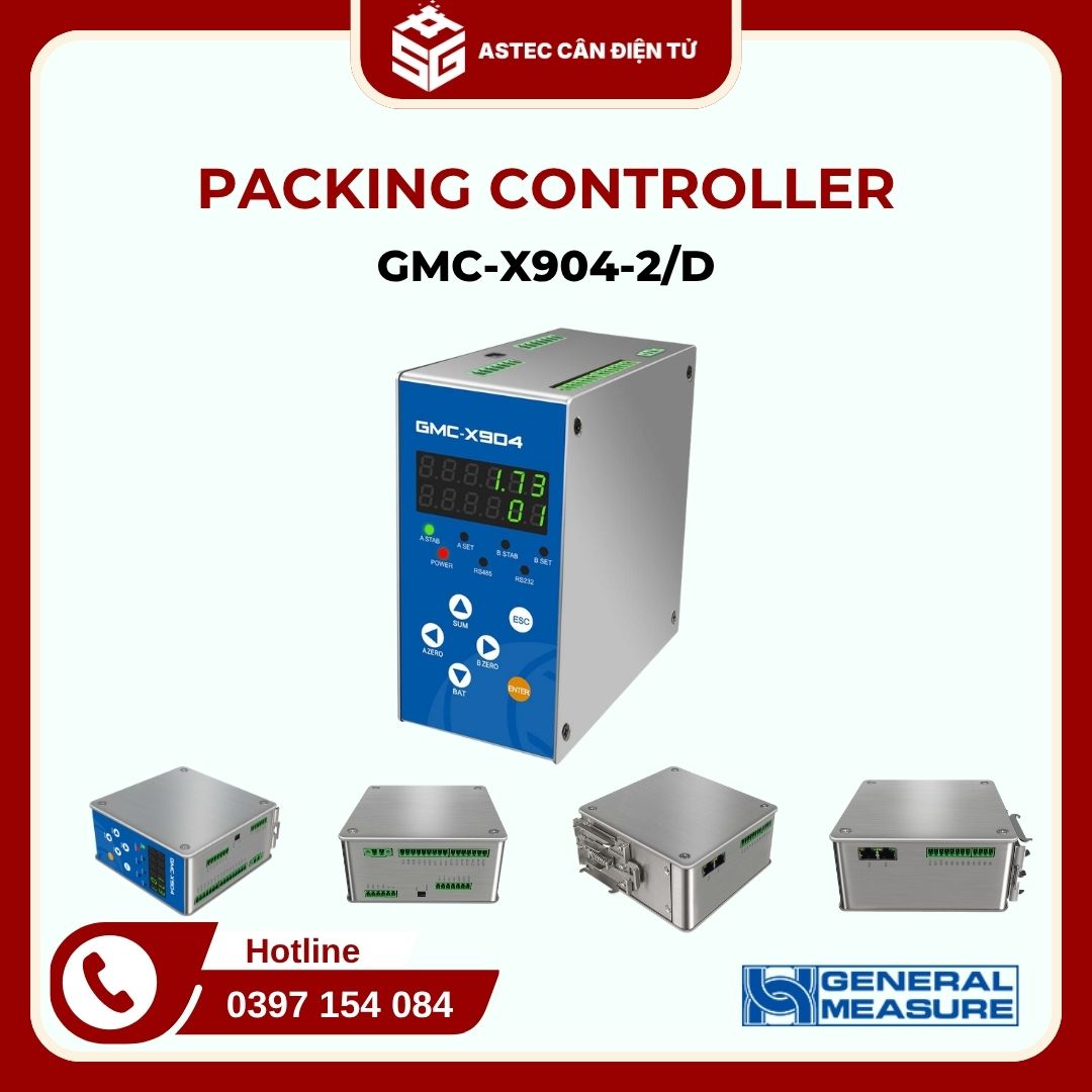 GMC-X904 là bộ điều khiển đóng bao (packing controller) dạng gắn DIN rail, được phát triển chuyên dụng cho các hệ thống cân đóng bao trong công nghiệp. Thiết bị hỗ trợ cấu hình 1 phễu hoặc 2 phễu (single/dual hopper), đáp ứng linh hoạt nhiều mô hình dây chuyền đóng gói.